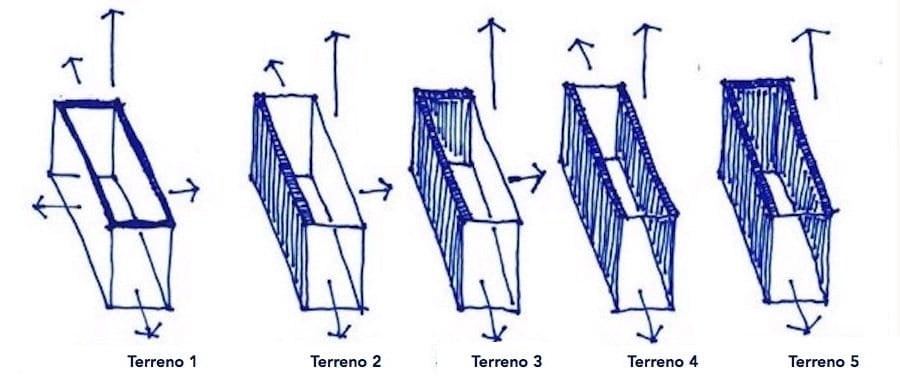 Entonces, lo primero es saber que tipo de terreno tienes y luego, en función de la trayectoria solar, distinguir tres tipo de fachadas: fachada principal, fachada óptima y quinta fachada.